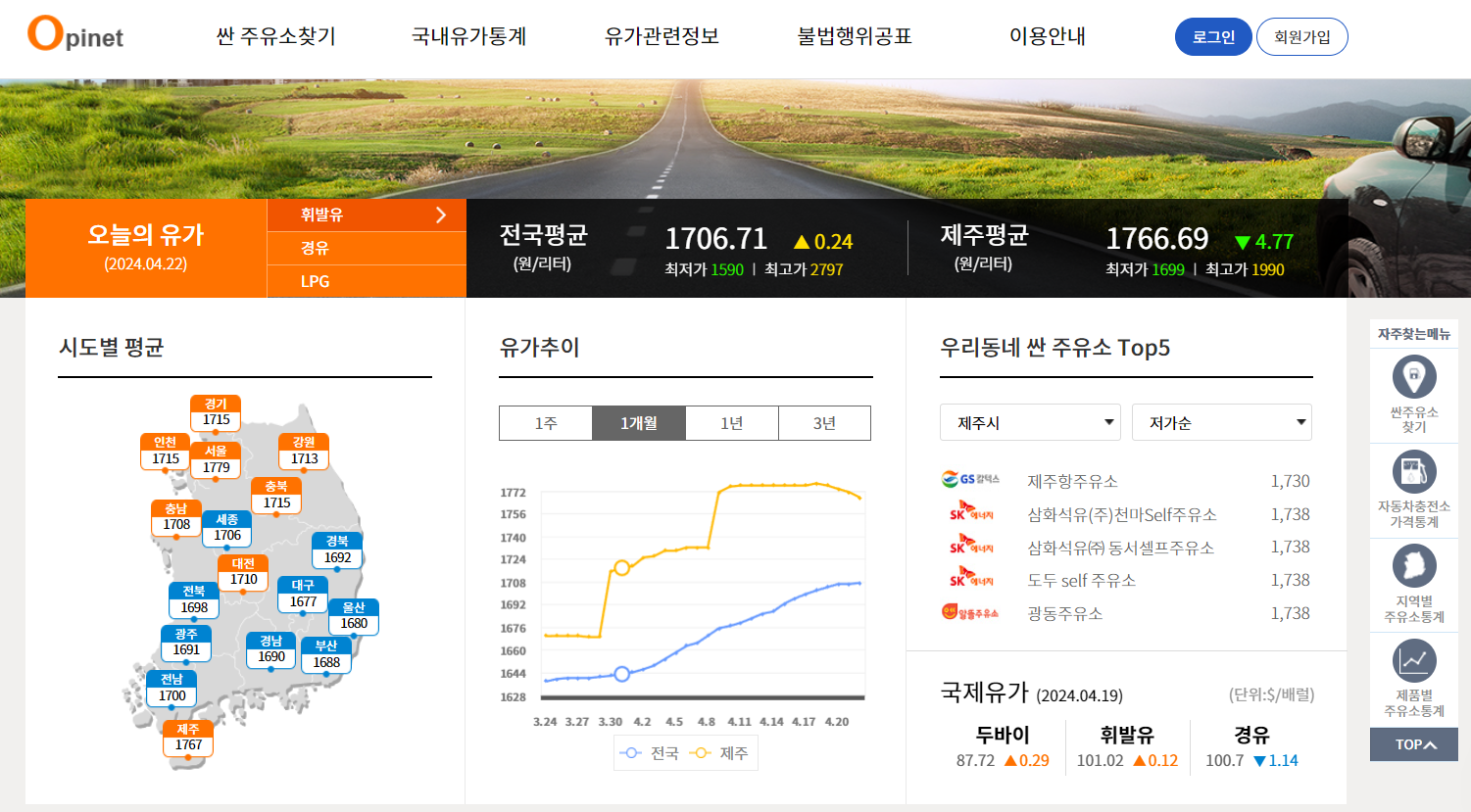 1. 오피넷 사이트로 들어갑니다.
