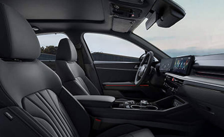 내부 인테리어는 각종 인포테인먼트와 파노라믹 커브드 디스플레이 및 공조 조작계로 구성되습니다.